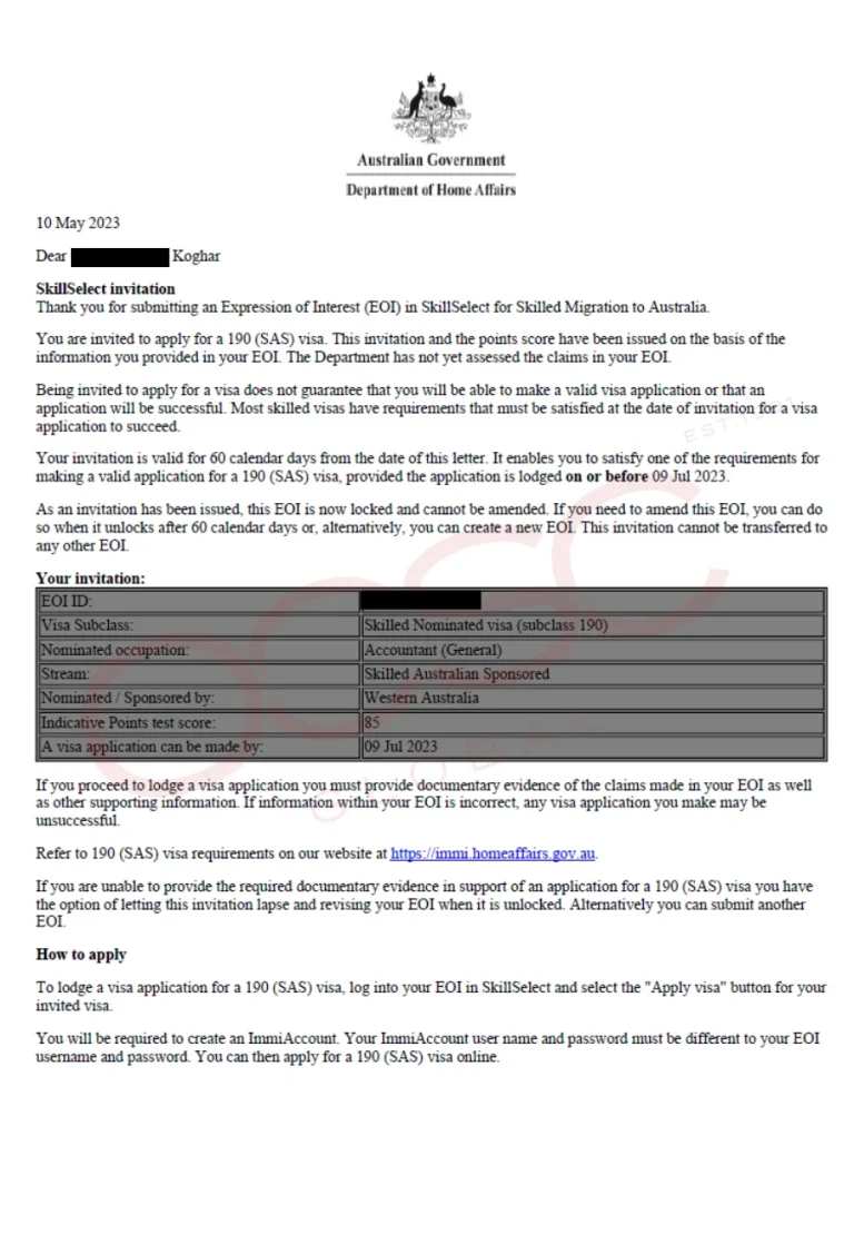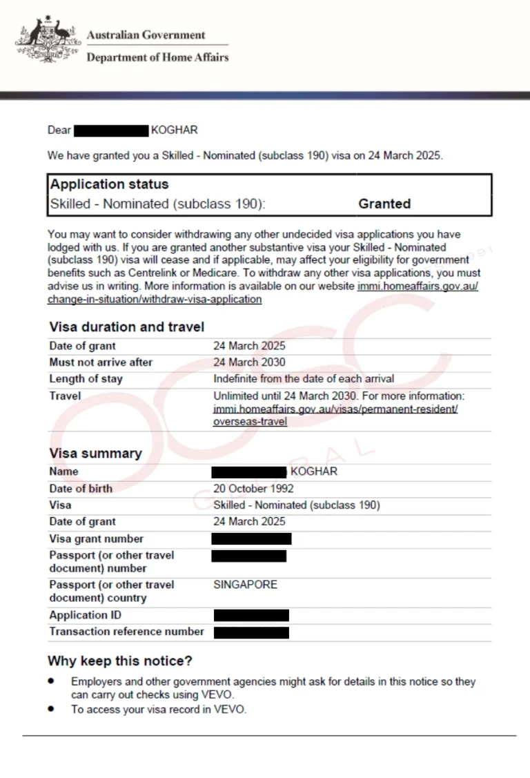 Australia Subclass 190 Visa Approved – A Skilled Migrant’s Journey to PR!