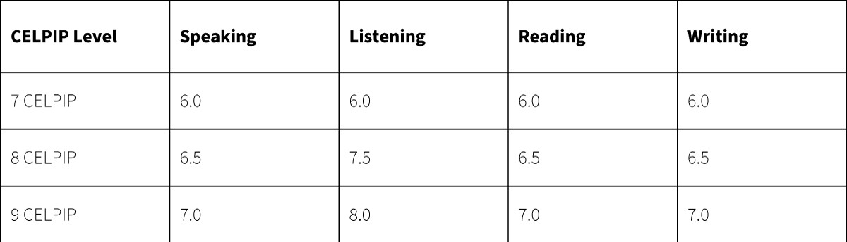 CLICK HERE FOR IELTS GENERAL TO CELPEP GENERAL EQUIVALENCY CHART